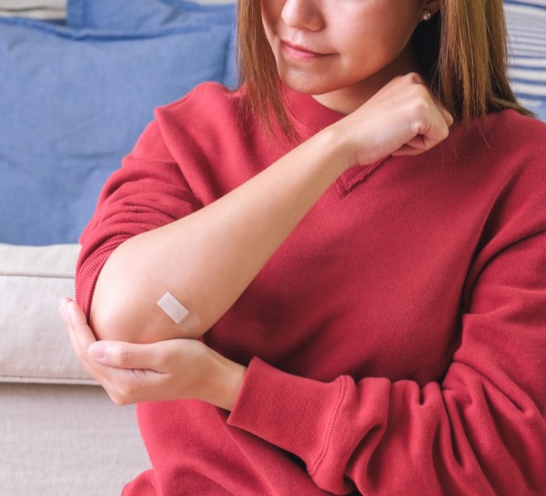 Las personas que han estado en el turno de la mañana se deberían quitar el apósito a media tarde y los del turno de la tarde o noche al día siguiente. En ese momento, se debe lavar con agua y jabón y secar bien con una toalla, pero sin arrastrar, con pequeños toques para no levantar los coágulos que tengamos en los puntos de punción.
